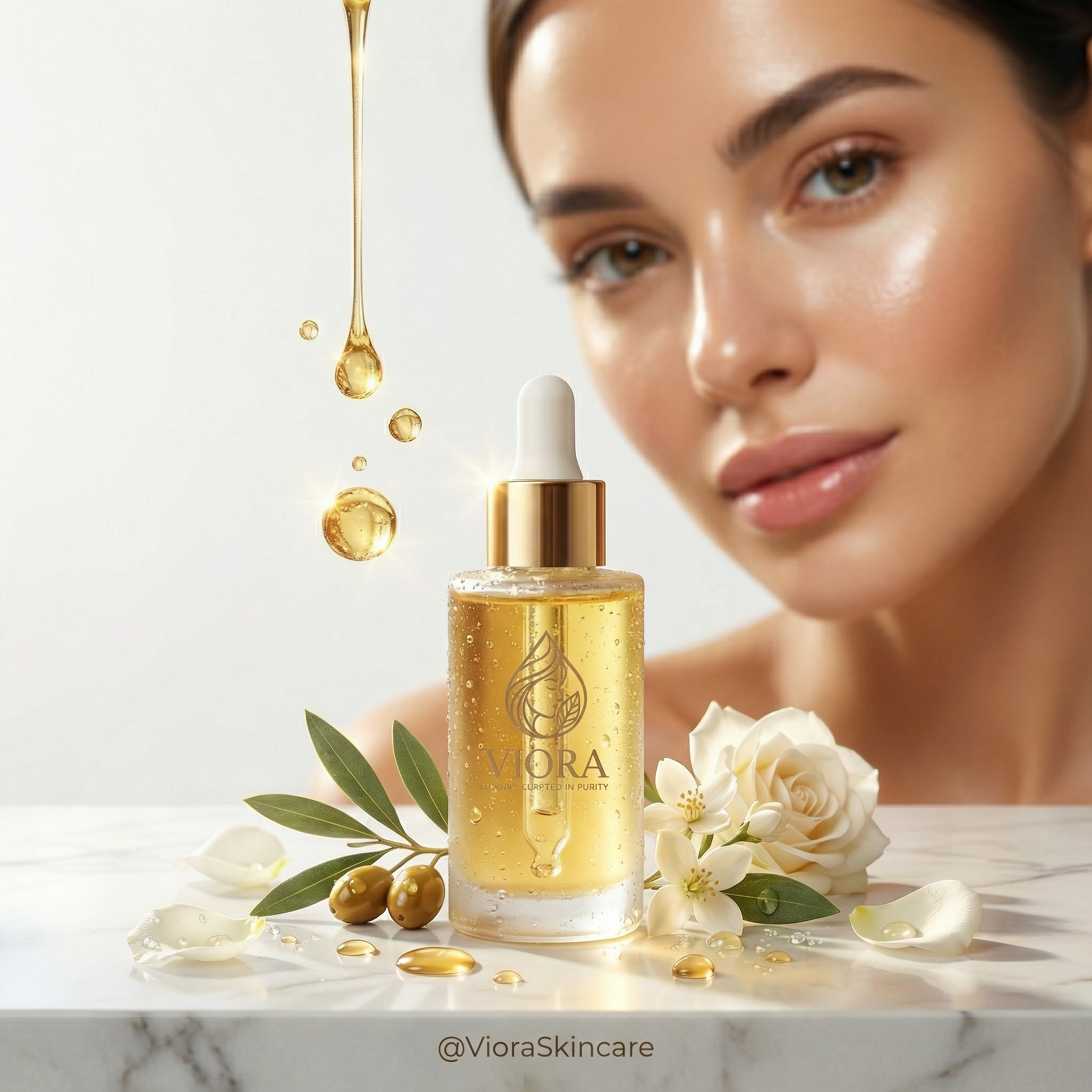 Viora Premium Facial Oil is formulated with a luxurious blend of rare botanical extracts, precious plant oils, and natural antioxidants. Our proprietary formula features jojoba oil for deep hydration, rosehip for rejuvenation, argan oil for nourishment, and plant-derived squalane for optimal skin compatibility. Each ingredient is carefully selected for its proven skincare benefits and ability to work harmoniously with your skin. Our formula combines the power of nature with scientific innovation to deliver transformative results. Free from harsh chemicals, parabens, and synthetic fragrances, this pure botanical essence is suitable for all skin types and delivers visible improvements in hydration, firmness, and radiance.